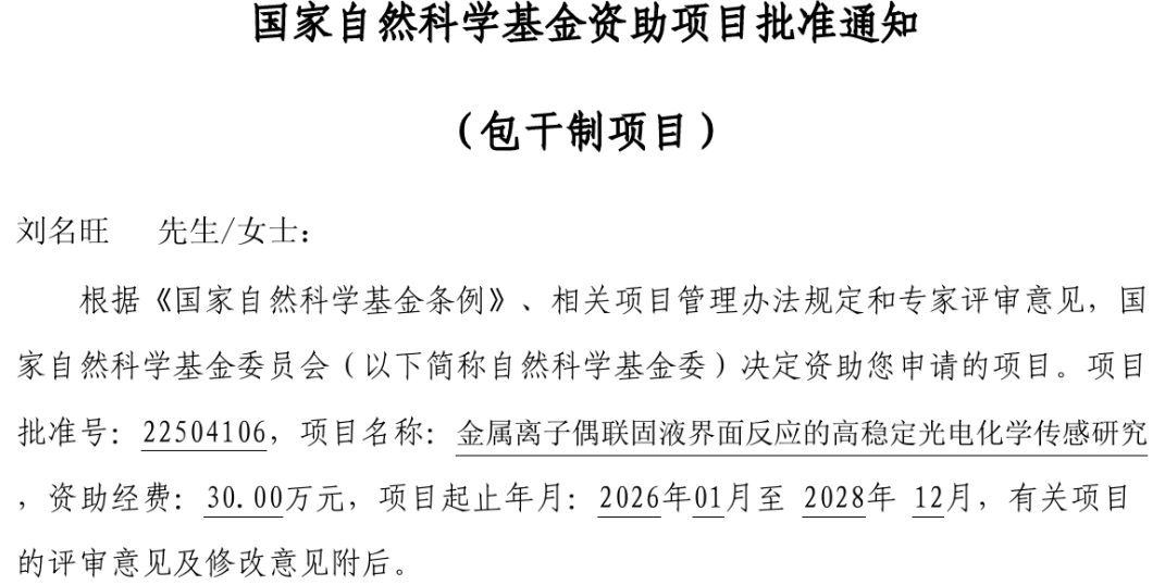 青年教师刘名旺老师申报的项目获得青年科学基金项目(C类)资助,资助经费30万元。