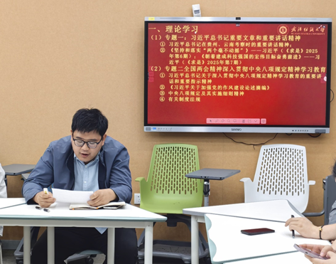 李楠传达了中央八项规定细则,深入贯彻中央八项规定精神学习教育。他传达学习中国工程院院士、校长徐卫林的《深学笃行中央八项规定精神, 以“严、真、实”的工作作风服务学校双一流建设》专题报告,他强调,深学笃行中央八项规定精神,既是政治要求,更是发展机遇。面对“双一流”建设的时代重任,让我们以严正行、以真铸魂、以躬身实干的姿态答好新时代纺大人的使命之卷!八项规定是中国共产党在党的十八大之后制定的第一部重要党内法规,它既不是最高标准,更不是最终目的,只是我们改进作风的第一步,是我们作为共产党人应该做到的基本要求,广大党员干部要身体力行,不仅要把八项规定存于思想层面,更要付诸行动,弘扬谦虚谨慎、艰苦奋斗等光荣传统,涵养求真务实、清正廉洁的新风正气,时刻保持党员干部的好作风、好形象。全体党员对八项规定学习内容进行了交流,进一步学习党的作风建设重要论述。