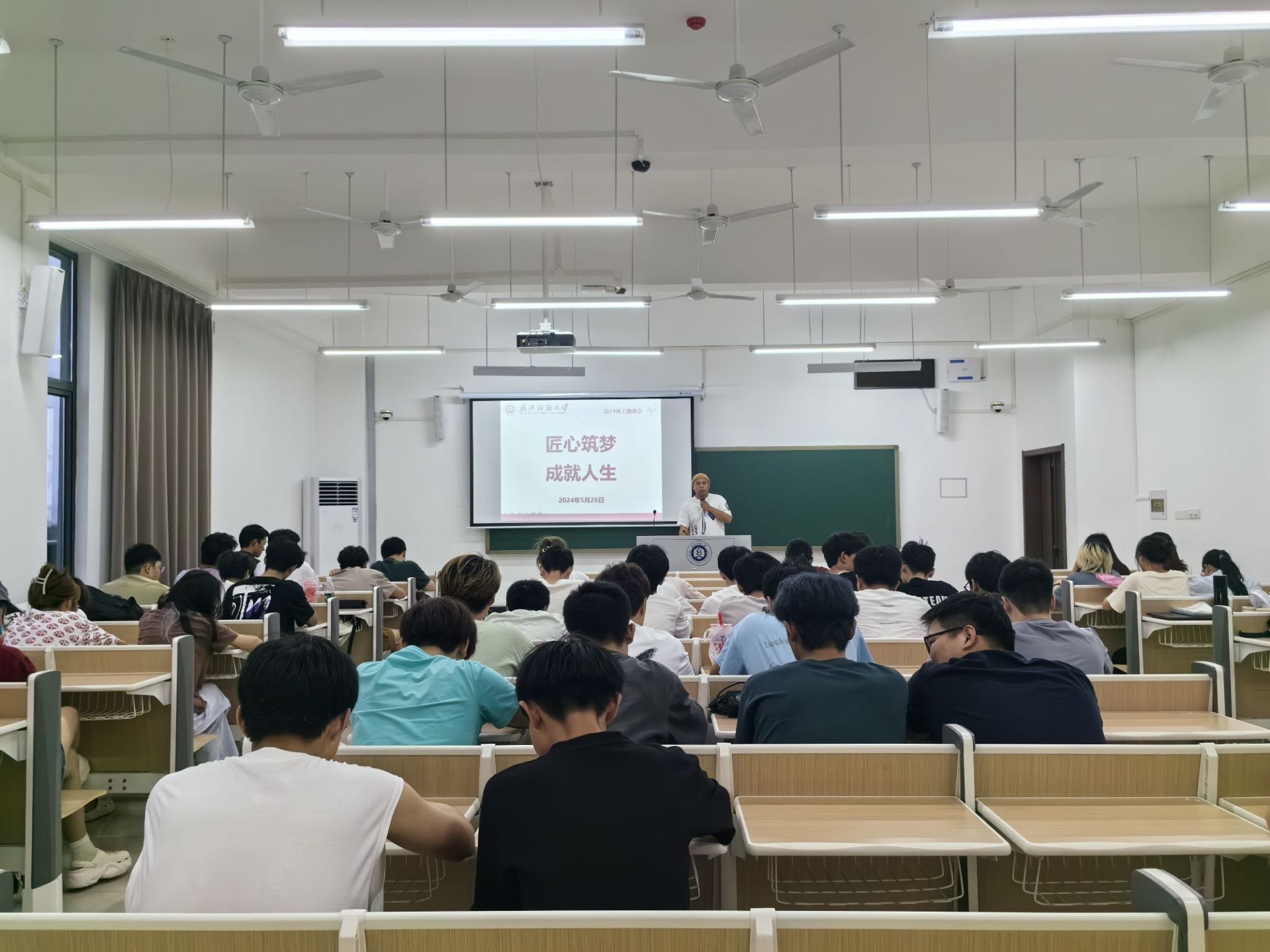 在九教520教室召开第十三周年级大会暨“匠心筑梦,成就人生”主题班会,本次会议由辅导员朱一雷主持,52书库