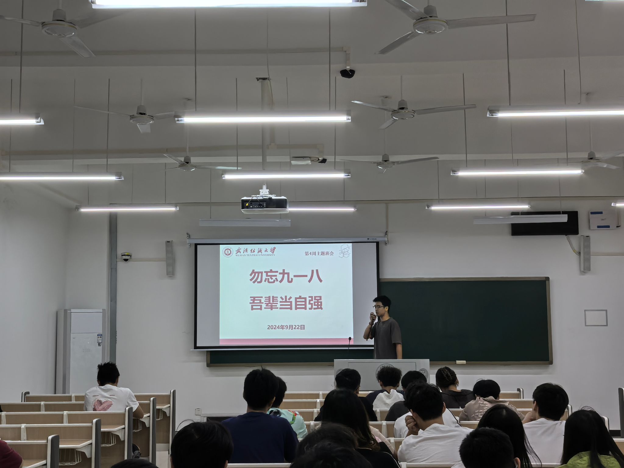 学院于9月22日开展“勿忘九一八,吾辈当自强”主题班会,此次班会旨在铭记历史,缅怀先烈,激发同学们的爱国热情和奋斗精神。本次班会由辅导员朱一雷主持,全体学生共同参与。