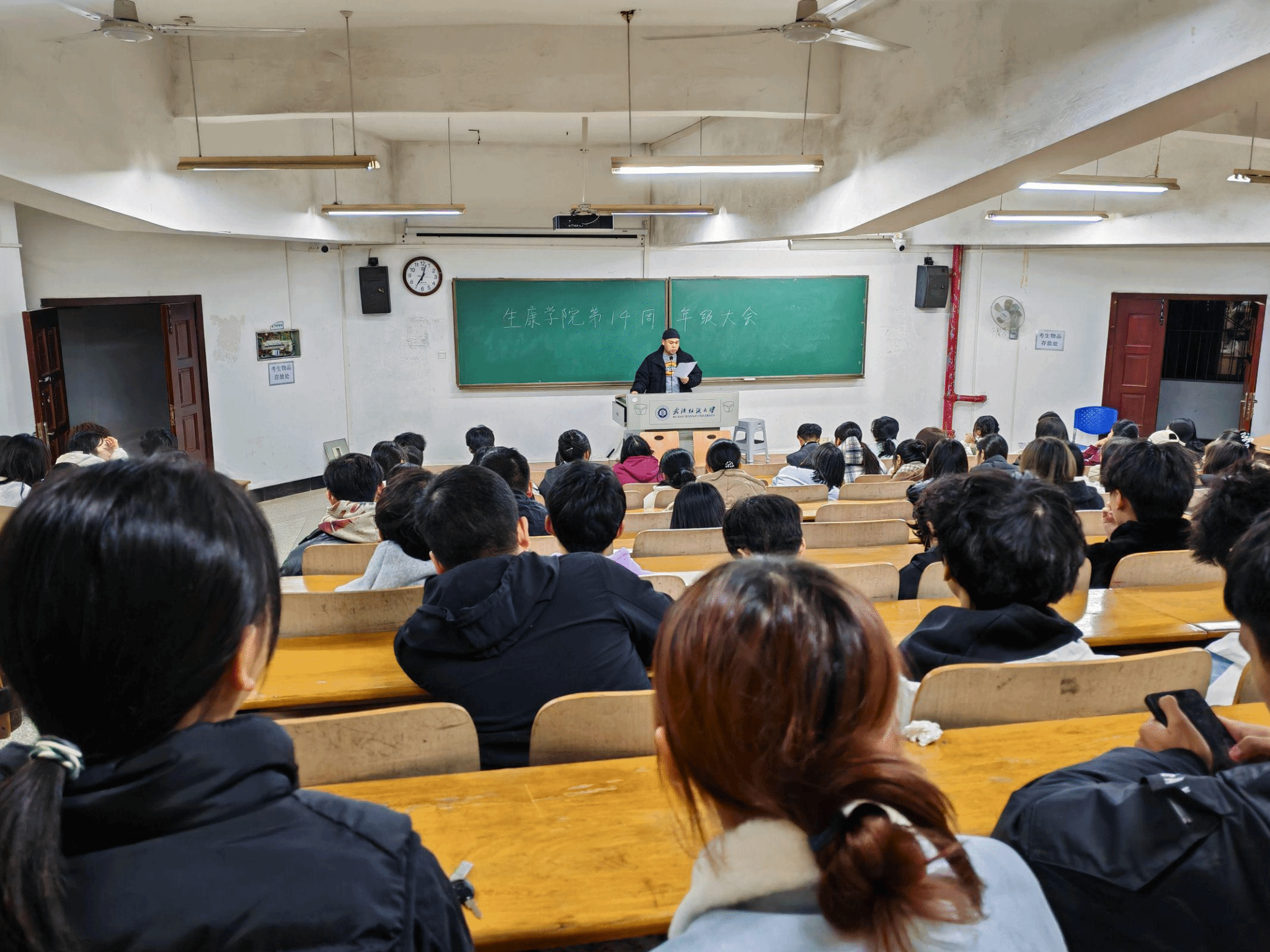 全体学生参加本次大会,本次大会由辅导员朱一雷老师主持。