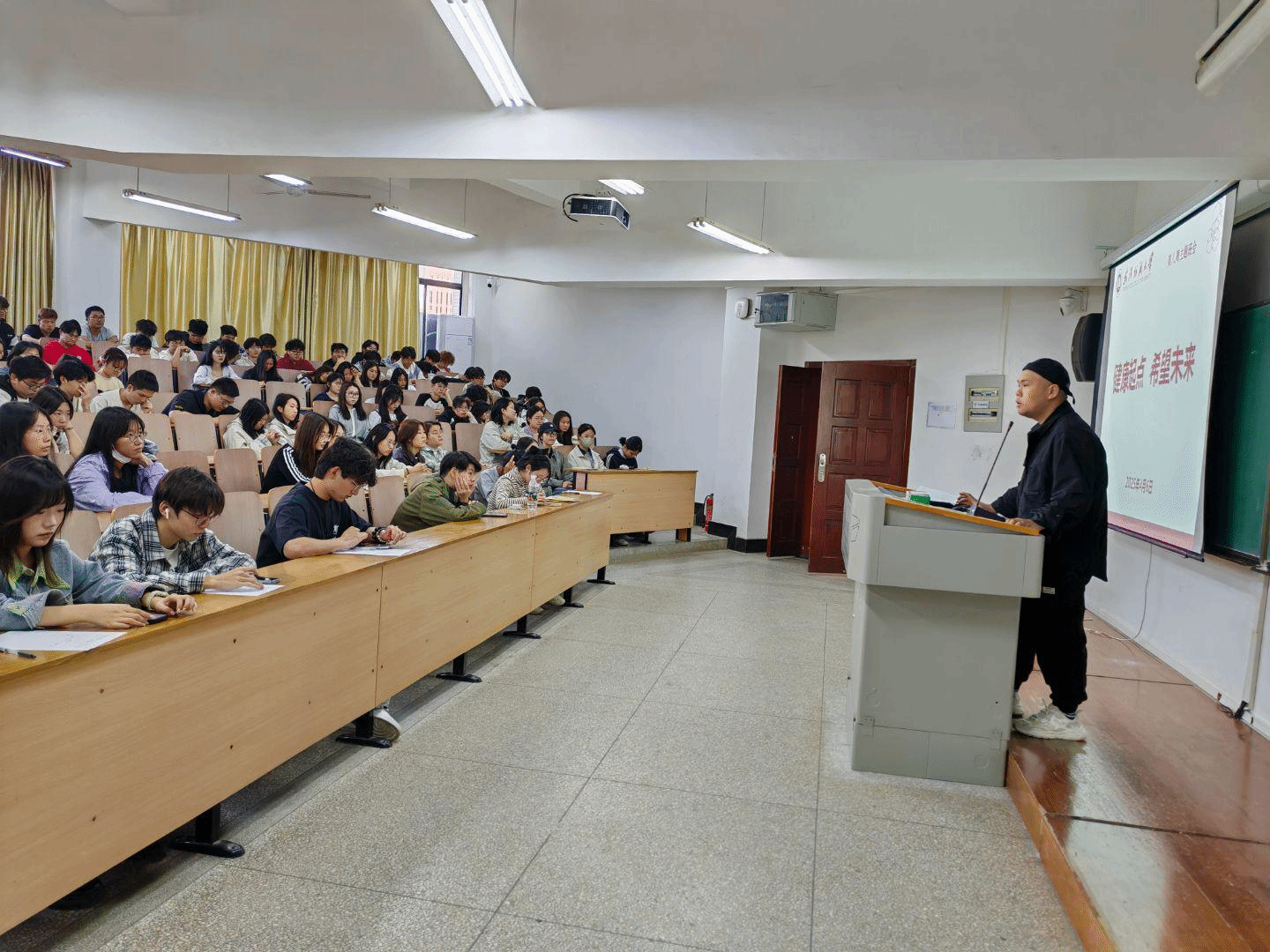 于7-T201教室召开主题为“健康起点,希望未来”的年级大会。本次大会由辅导员朱一雷主持,2023级、2024级全体学生共同参与。