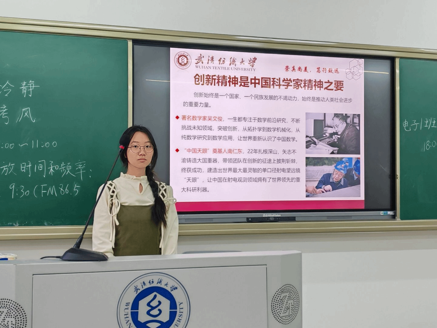 班会上,主持人通过讲述“两弹一星”元勋隐姓埋名、当代科研团队攻坚人工智能与量子技术的奋斗故事,生动诠释了科学家精神的内涵。一段记录屠呦呦团队发现青蒿素历程的纪录片,让同学们深刻体会到“十年磨一剑”的坚守与奉献。2024级学生刘永真感慨:“老一辈科学家在设备匮乏的年代尚能创造奇迹,如今我们拥有先进的实验室和跨学科平台,更应以他们为榜样,在健康科技领域突破‘卡脖子’难题。”