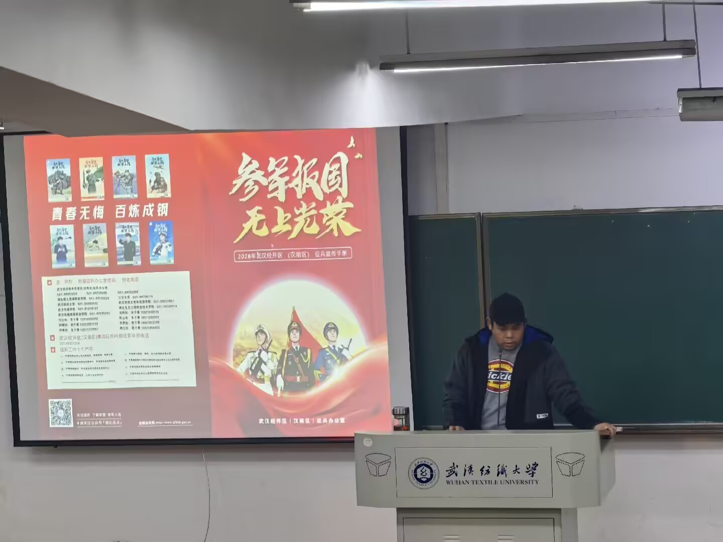 于7教T-201开展“携笔从戎砺青春,热血报国正当时”主题班会暨征兵宣传“三个一”活动,本次大会由党委学生工作部、武装部统筹,2023级、2024级、2025级全体同学共同参与,辅导员朱一雷主持会议。