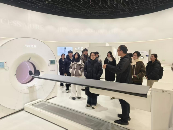 接着,研究生一行参观武汉联影智融医疗科技有限公司。联影智融专注于手术机器人、智能影像解决方案等高端医疗装备的研发与应用。企业代表通过案例分享、视频演示等形式,展现了智慧医疗科技如何赋能精准诊疗、提升手术效率,为未来医疗模式带来全新想象。