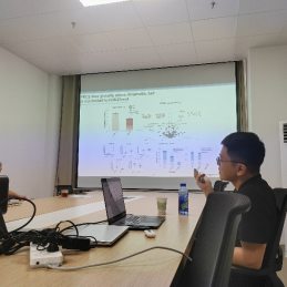 谢一轩研究员首先介绍了组蛋白、RNA及DNA修饰的鉴定与定量表征新技术,随后从糖基化RNA结构解析相关问题出发,介绍其近年来依靠上述生物质谱技术在表观组学研究取得的系列研究成果。报告结束后,谢老师与会师生进行了相关的问题讨论,现场学术氛围热烈。