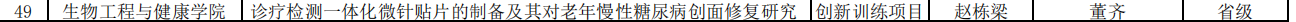 《诊疗检测一体化微针贴片的制备及其对老年人慢性糖尿病创面修复研究》项目由赵栋梁、姚斯宇、叶祥盛共同负责,52书库